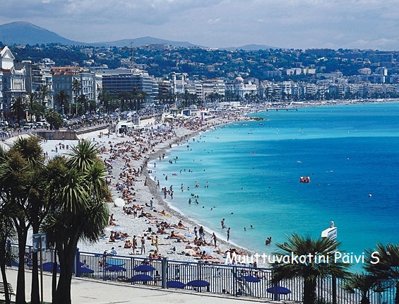 Meidän vuokra huoneisto oli toisessa kerroksessa, kulmassa. Huoneistoon kuului kolme isoa makuuhuonetta, iso olohuone, keittiö saarekkeineen ja kaksi kylpyhuonetta ja erillinen wc-tila. Asunto sijaitsi ihan Nizzan rannalla ja näkymät olivat hienot. Olikin kiva aamuisin katella ko ihmisiä juoksi aamulenkillä tai uimassa.
